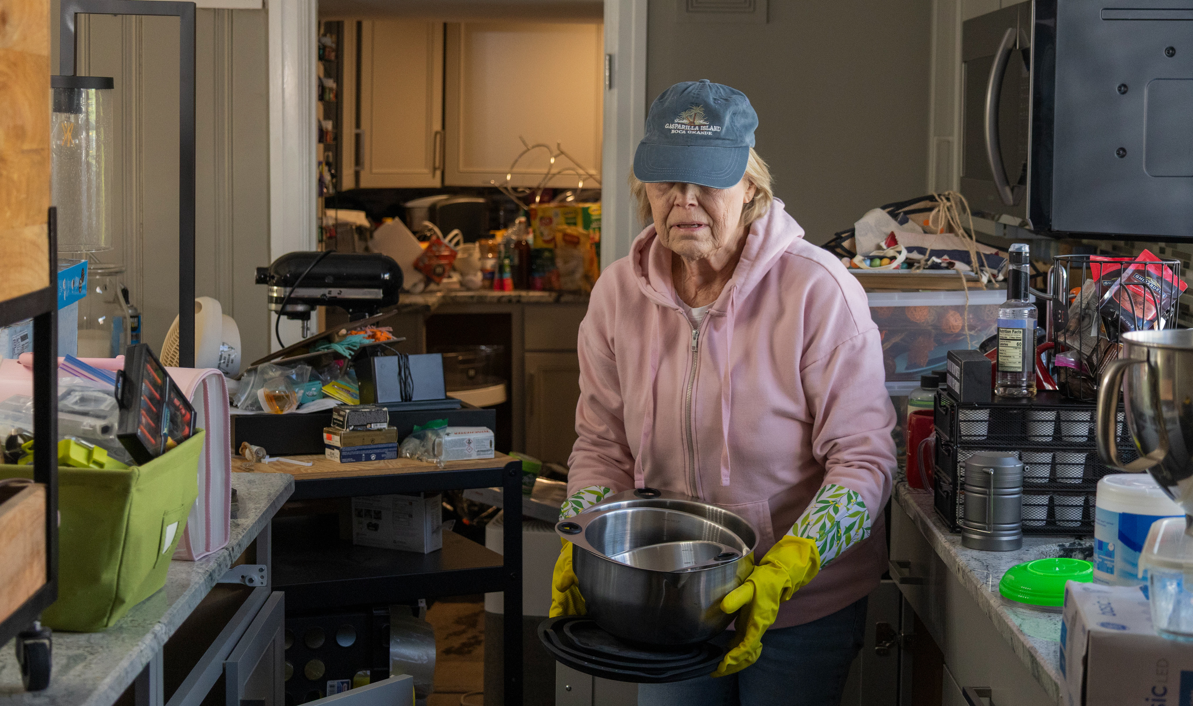 Gay Wilbanks spends her morning moving kitchenware out of cabinets after the April 5 floods wrecked her home on Nashville Road in Bowling Green, Ky., on Sunday, April 9, 2025. Wilbanks and her family have owned their home off-and-on for 55 years, and have dealt with flooding every time Lost River Cave hits capacity, and water rises out of the sinkhole in their front yard.